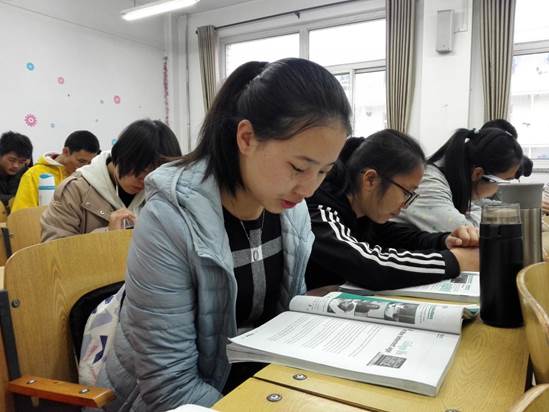 深秋的清晨,气温已低至零下。六点三十分左右,各晨读教室的学生工作人员准备就绪,陆续到达教室的同学有序签到,安静入座并拿出资料书籍大声朗读,他们聚精会神,精神抖擞,琅琅书声充满了整座教室,青春之气激荡回旋。