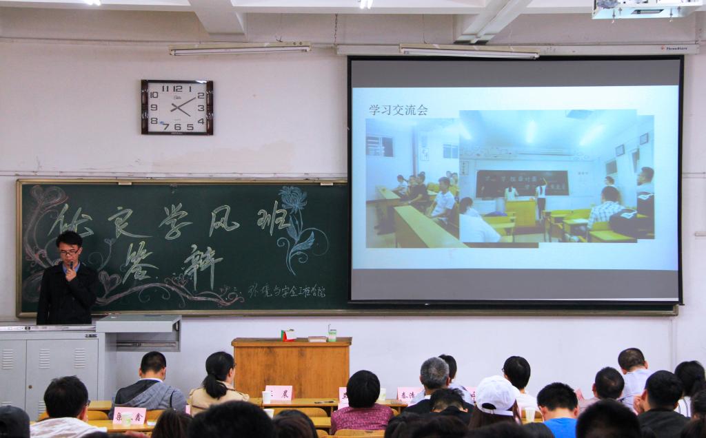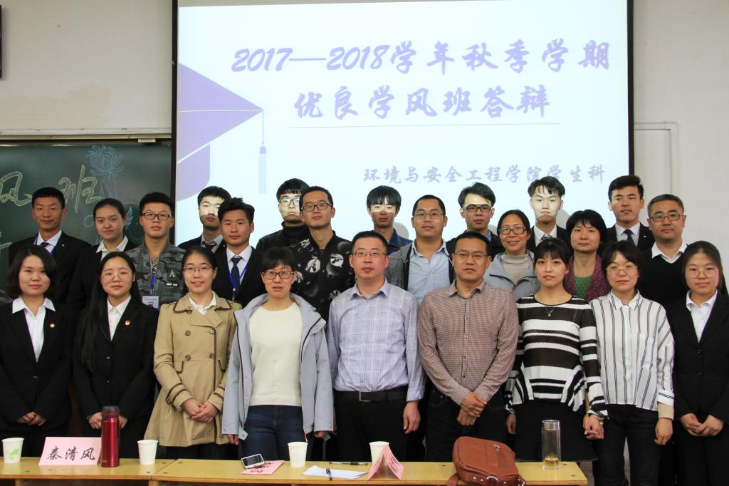 2018年3月27日下午3:00,环境与安全工程学院“优良学风班”答辩活动在10104H教室举行,参加答辩的评委老师有张少明副书记、学生科的老师及各班班主任等十余位老师。