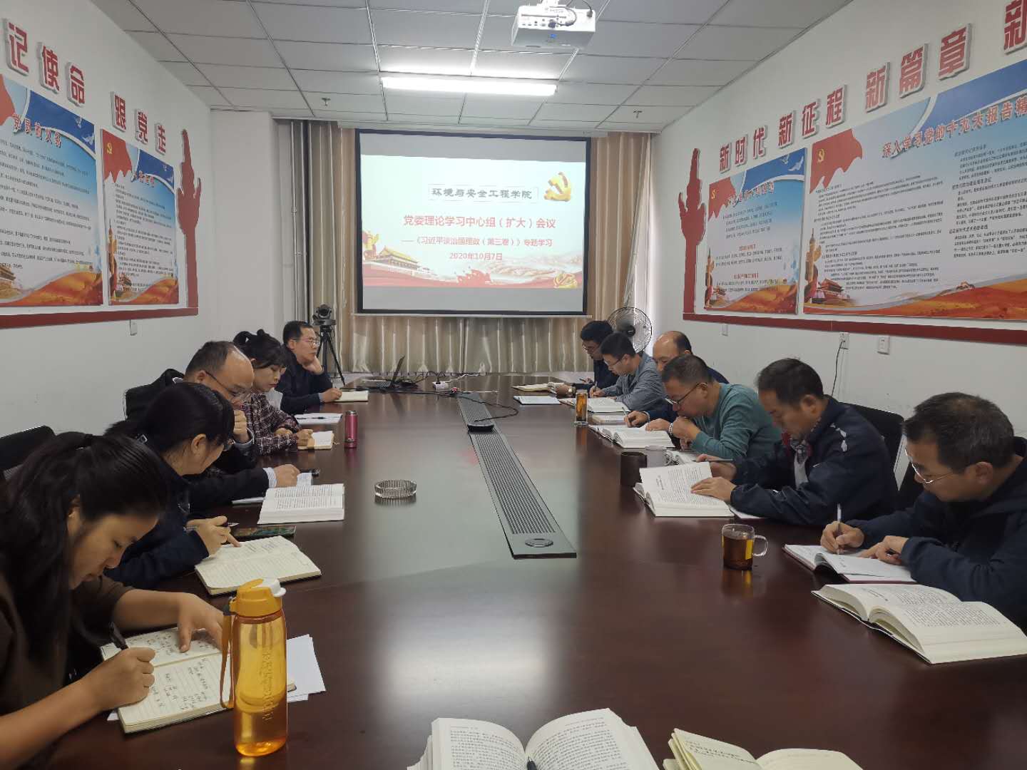 2020年10月7日上午,环境与安全工程学院在科学楼C座614会议室召开党委理论学习中心组(扩大)会议暨意识形态工作分析研判会。学院科级以上干部、各支部书记和系主任参加会议,会议由党委书记赵树森同志主持。