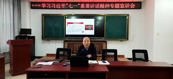 2021年10月26日下午,环境与安全工程学院党委书记赵树森同志作题为《以史为鉴、开创未来——习近平总书记“七一”重要讲话精神解读》专题讲座,全院教职工参加了本次学习。