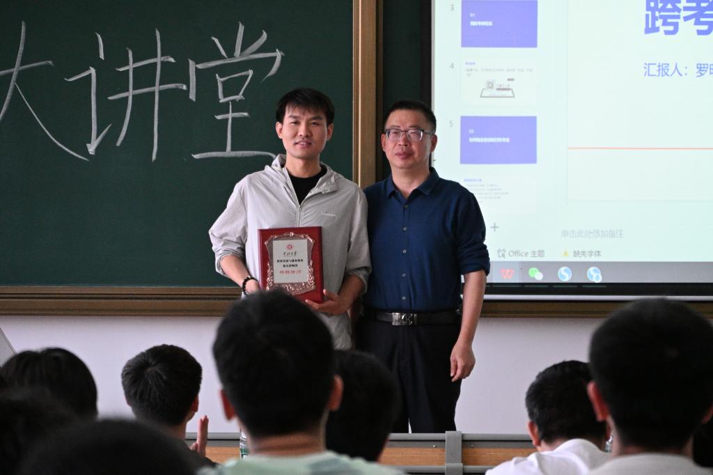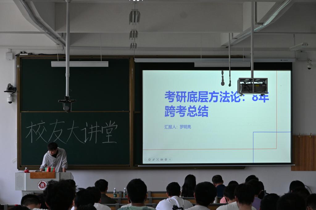 互动环节气氛热烈,学生们围绕 “跨考专业选择逻辑”“长期备考精力管理”“创业与学业的价值关联” 等话题踊跃提问,罗明亮结合个人经历逐一深入解答,其兼具实用性与哲理性的回答引发阵阵共鸣。在场学生纷纷表示,讲座不仅厘清了备考迷雾,更在职业规划与人生态度上深受启发。