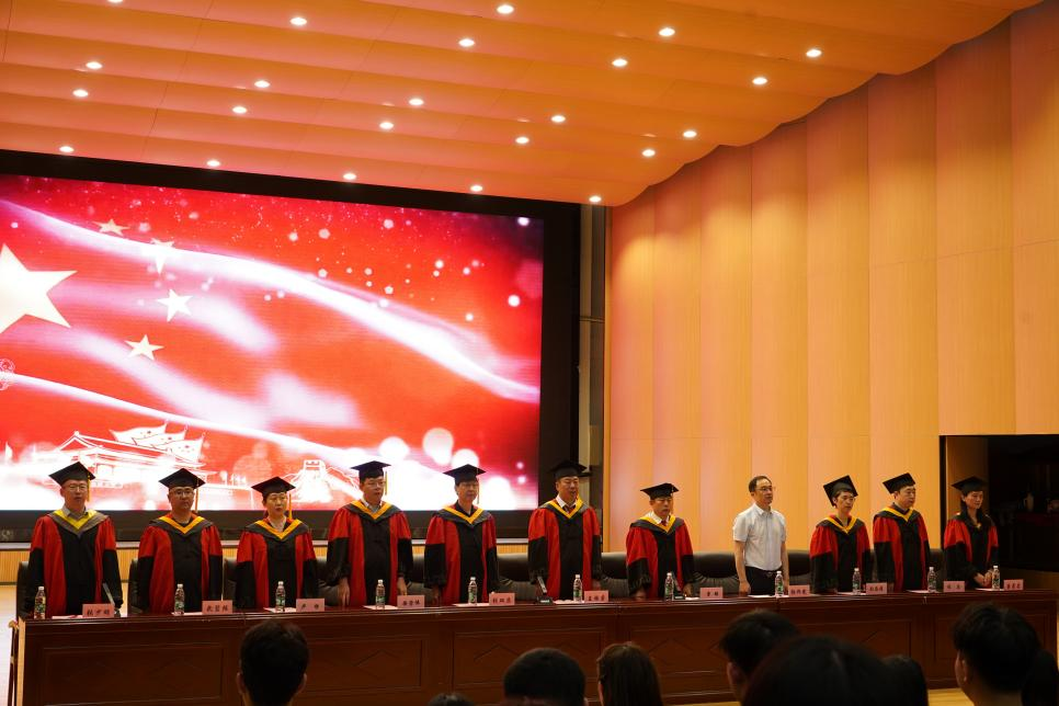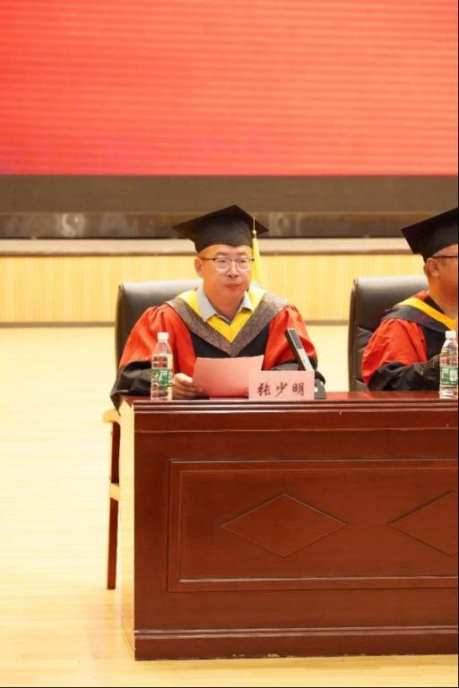 典礼在庄严的国歌声中拉开帷幕。全体师生肃立,激昂的旋律激荡起浓浓的家国情怀,也寓意着毕业生们将带着使命担当,奔赴祖国各地。国歌结束后,主持人院党委副书记张少明宣布典礼正式开始,温馨而庄重的氛围迅速弥漫全场。
