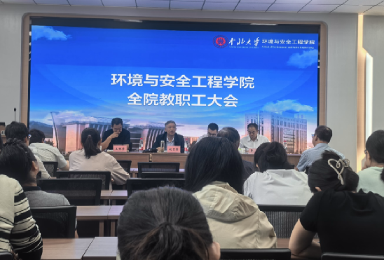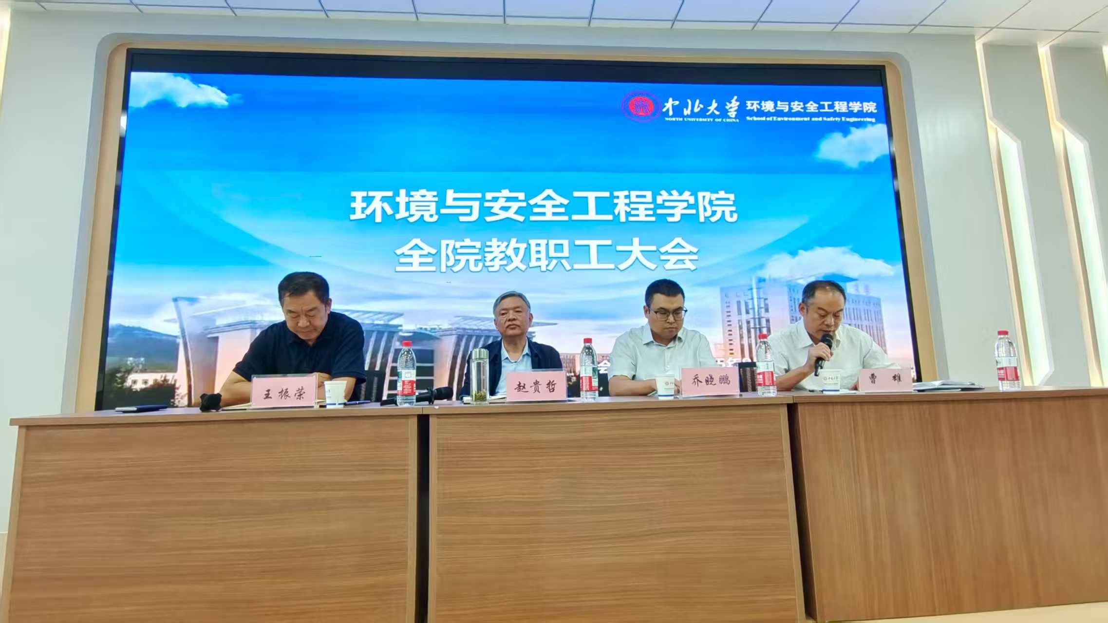 2025年9月1日上午,环境与安全工程学院在A115学术报告厅召开全院教职工大会,中北大学/党委常委、副校长赵贵哲参加大会,会议由院党委书记王振荣主持。