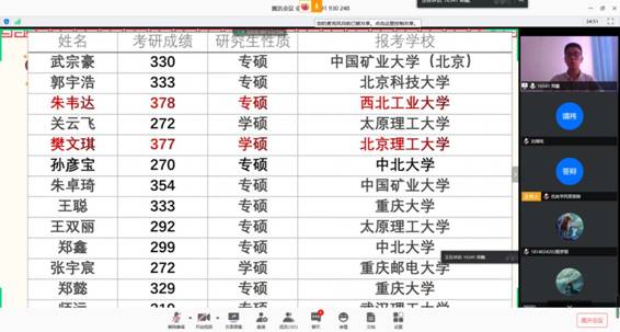 为了促进我院良好学风和校风的形成,引导广大学生勤奋学习,全面激发学生自觉学习、奋发进取的积极性,不断增强学生成长成才的动力,提高人才培养质量,我院于5月6日下午三点举行了2019-2020学年第一学期优良学风班线上答辩活动。参加本次答辩并担任评委老师的有环境与安全工程学院党委副书记张少明以及各位班主任老师。虽然此次答辩处于抗疫防疫的特殊时期,但在学院领导和学生科老师的大力支持下,此次答辩活动取得了圆满成功。