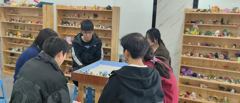 培训伊始,老师精心组织了多个小游戏,迅速打破了参与者之间的陌生感,营造了轻松愉悦的氛围。随后,备受期待的沙盘环节登场。参与者们围绕沙盘,运用各种模型和道具,自由地构建场景,编织出一个个独特而富有创意的故事。每一个沙盘作品都仿佛是一扇通往内心深处的窗户,展现了参与者隐藏的情感和想法。