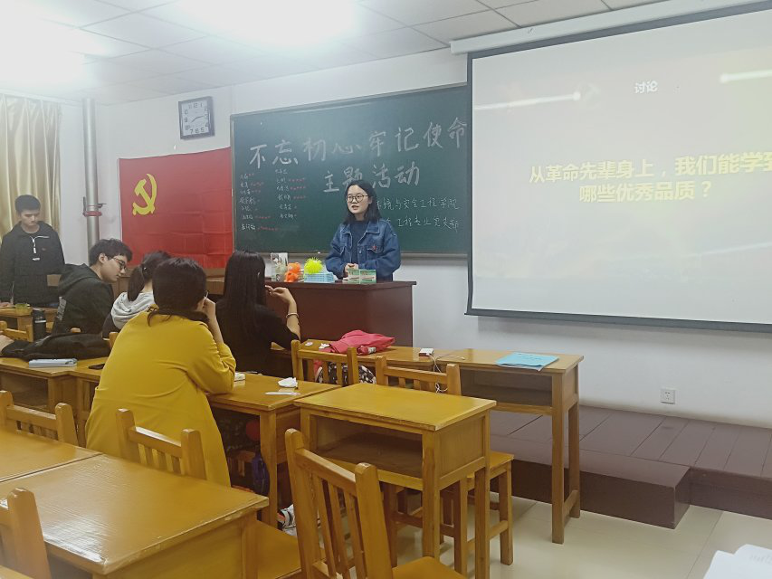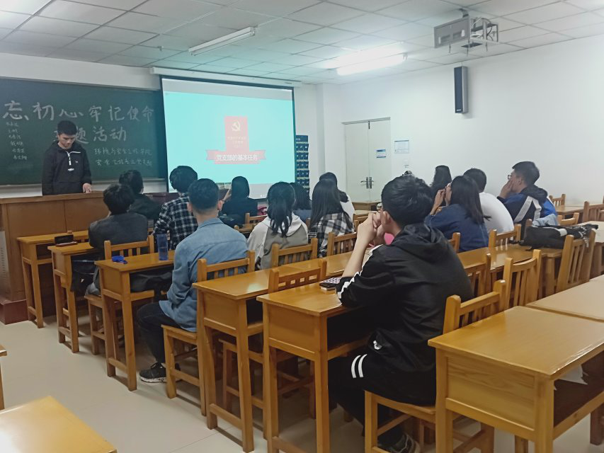 为深入推进“两学一做”学习教育常态化制度化,认真学习贯彻习近平新时代中国特色社会主义思想。我院安全工程学生党支部于2019年4月21日在16503Z举办“不忘初心、牢记使命”主题教育活动,组织全体学生党员学习《中国共产党支部工作条例(试行)》,进一步加强基层党组织建设,进一步加强学生党员的党性。