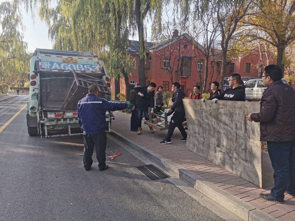 早上8点半,支部全体党员在党支部书记于晶老师的带领下来到华工社区,按照老师和社区管理人员的分配,帮助华工社区进行清扫工作。在社区工作人员的指挥下,大家把社区里的废旧物品搬上垃圾车,将街道两旁的落叶清扫干净。经过党员同志们和华工社区工作人员的共同努力,华工社区街道环境焕然一新。