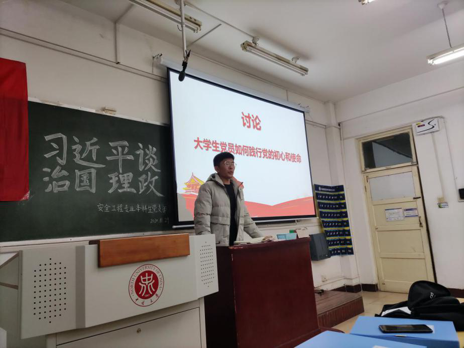 2020年11月29日晚七点,安全工程本科生党支部于10307H开展了以“学《习近平谈治国理政》第三卷,坚定信仰真信笃行”为主题的党日活动,支部全体党员及发展对象参加了此次活动。