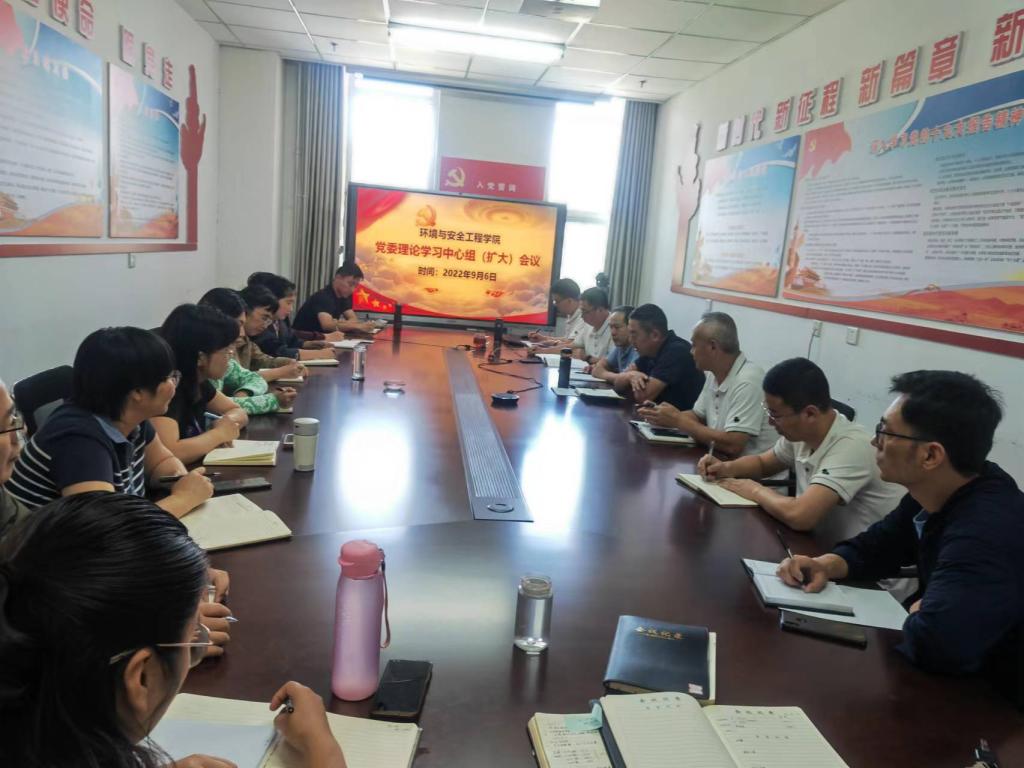 2022年9月7日下午,环境与安全工程学院党委在科学楼C座614会议室召开中心组(扩大)理论学习会议,学院党委委员、科级以上干部、党支部书记、系主任、组织员参加会议,会议由院党委书记王振荣同志主持。