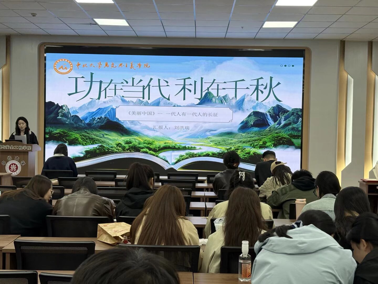 王欣蒙同学以《青春筑生态,绿色向未来》为题,从当前生态环境现状切入,解读国家绿色发展战略,结合青年参与生态保护的鲜活案例,展现青春力量在生态文明建设中的作用,呼吁全体同学从节约资源、垃圾分类等身边小事做起,以实际行动守护绿色家园;刘洪瑞同学以《美丽中国——代人有一代人的长征》为题,从塞罕坝林场建设者攻坚克难、植树造林的经典案例出发,生动诠释了生态之美、自然之美、民生之美的内在联系,号召新时代青年传承奋斗精神,扛起生态文明建设的时代责任,为美丽中国建设贡献青春力量;王杨洋同学围绕《自然的控制》展开分享,辩证剖析科技发展带来的双刃剑效应,提出人类与自然不应是控制与被控制的关系,唯有秉持对话与共处的理念,才能实现人与自然和谐共生;李安琪同学从理论视角出发,解读《马克思的生态学》,立足全球生态危机现实,从理论层面剖析生态问题根源,阐述理论对实践的指导意义,呼吁两学院同学互相借鉴学科优势,共同思考生态治理路径。