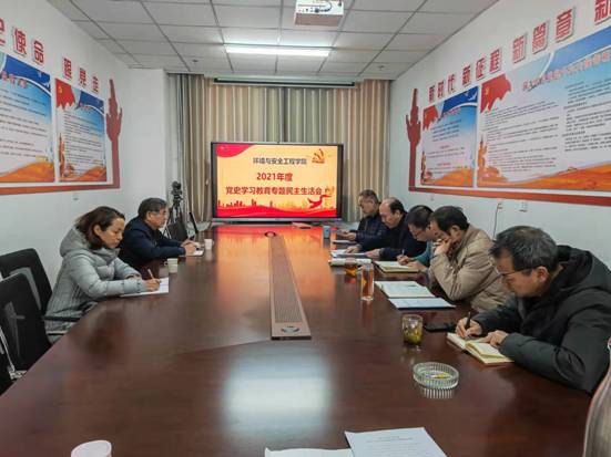 根据校党委《关于开好2021年度党史学习教育专题民主生活会的通知(党组[2021]6号文件)》要求,2022年1月12日上午,环境与安全工程学院以“大力弘扬伟大建党精神,坚持和发展党的百年奋斗历史经验,坚定历史自信,践行时代使命,厚植为民情怀,勇于担当作为,团结带领人民群众走好新时代的赶考之路”为主题,在科学楼C座614会议室召开了学院领导班子2021年度党史学习教育专题民主生活会。校党委副书记曾建潮同志和校纪委委员、机械工程学院党委书记张清同志应邀参加了本次民主生活会,学院领导班子全体成员参加会议,民主党派人士张树海同志列席会议,会议由院党委书记赵树森同志主持。