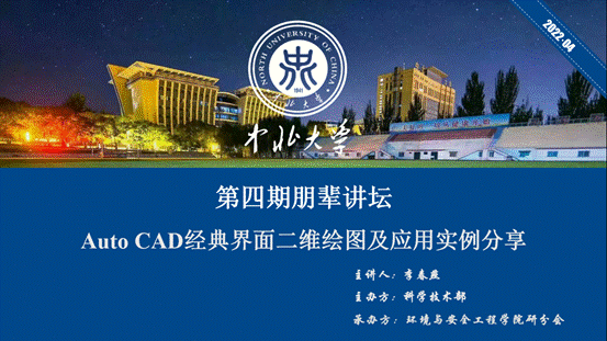 为加强同学们间的学术交流,帮助同学们掌握更多的实用软件,2022年4月24日上午10:30,环境与安全工程学院在线上举行了题为“Auto CAD经典界面二维绘图及应用实例分享”的朋辈讲坛。此次讲坛由我院李春燕同学担任主讲。