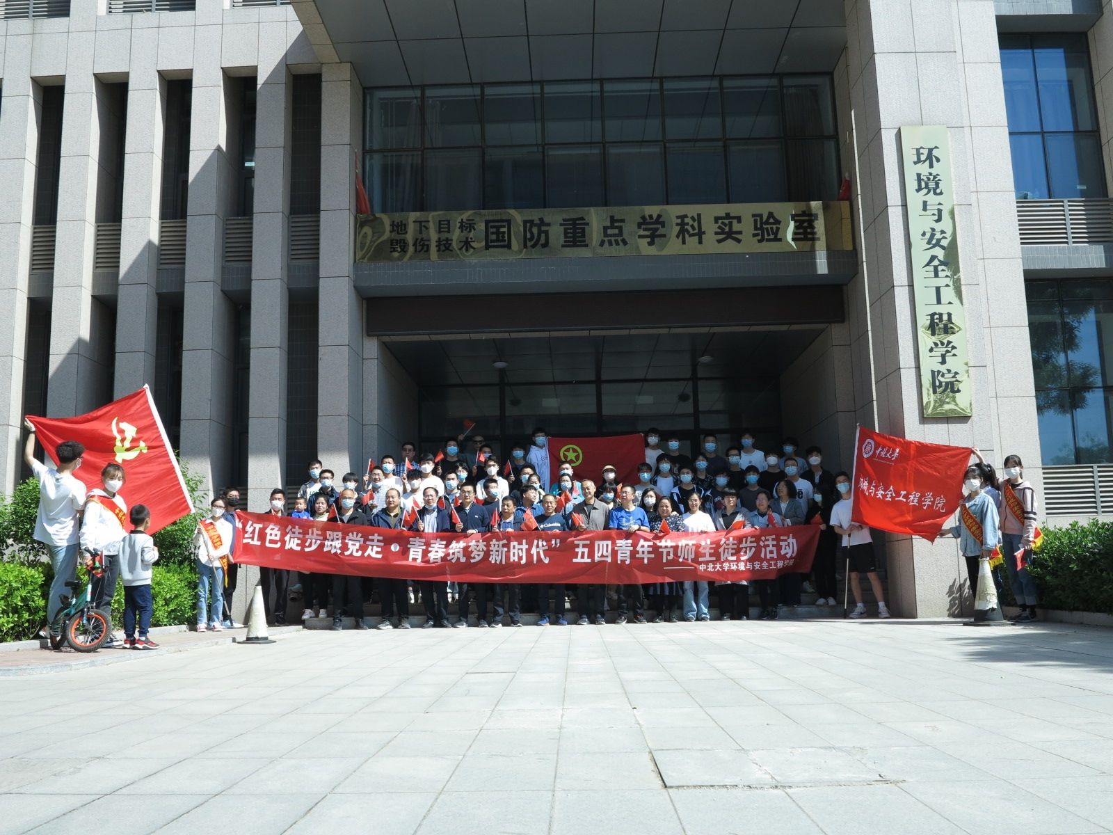 为不断强化共青团员和广大青年学生学党团史、强信念、践使命、跟党走的意识,5月4日上午,环境与安全工程学院开展了主题为“红色徒步跟党走·青春筑梦新时代”五四青年节师生徒步主题活动,感悟校园文化的红色基因,用这场特别的行动,庆祝建团100周年、纪念五四运动103周年。