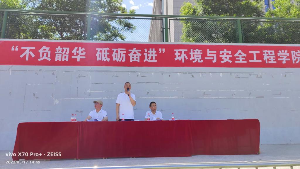 为积极践行习近平总书记在庆祝中国共产主义青年团成立100周年大会上的重要讲话精神,号召我院青年师生在新的伟大征程上,坚定历史使命,坚定前进信心,立大志、明大德、成大才、担大任,鼓励青年师生追求进步,增长本领,锐意进取,增强青年思想教育工作的吸引力和凝聚力,发扬环境与安全工程学院“不甘人后,敢为人先,先行先试,敢打敢拼”的优良传统,环境与安全工程学院在2022年5月17日下午,召开“不负韶华,砥砺奋进”师生趣味运动会。