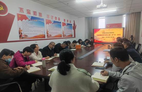 2022年11月1日下午,环境与安全工程学院党委在科学楼C座614会议室召开中心组(扩大)理论学习会议,学院科级以上干部、党支部书记、系主任、组织员、全体政治辅导员参加会议,会议由院党委书记王振荣同志主持。