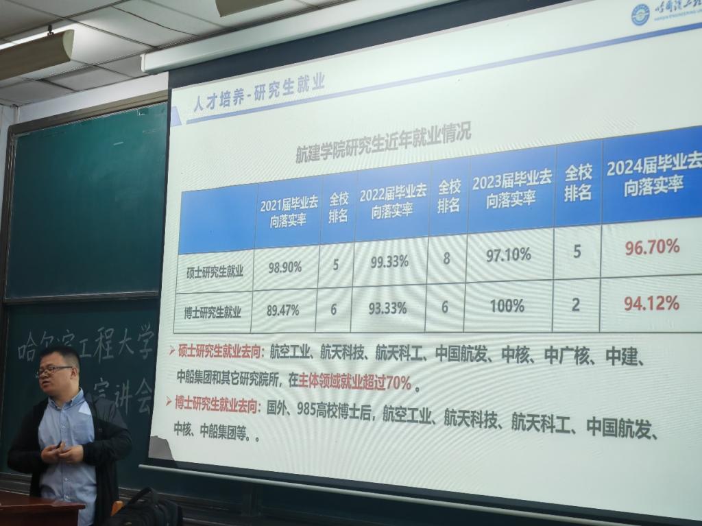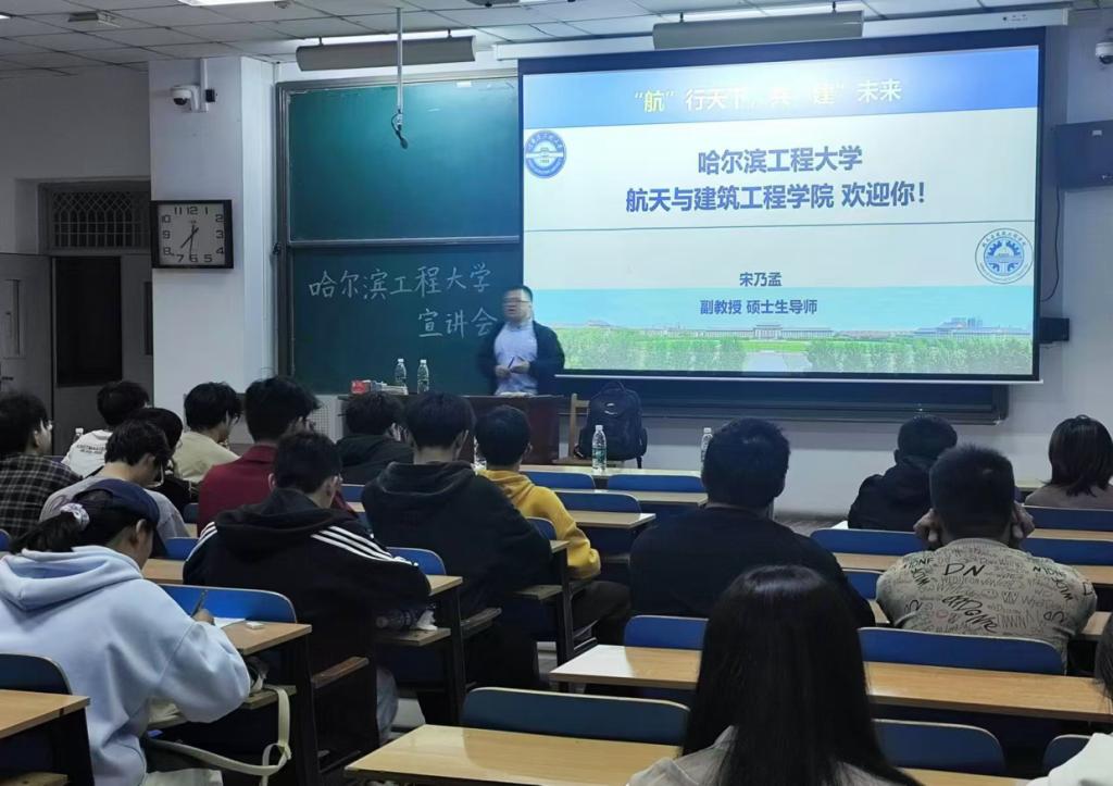 讲座在热烈的掌声中拉开帷幕,宋教授首先向同学们介绍了哈尔滨工程大学的历史沿革与辉煌成就,随后讲解了学校的学科布局,特别是力学、航空宇航科学与技术、土木工程等专业的独特研究方向与学术优势,分享了丰富的国际交流机会和研究生就业前景,激发了同学们对未来学术道路与职业发展的浓厚兴趣。