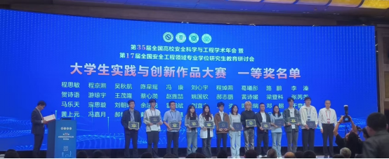 2025年10月17日至19日,由公共安全科学技术学会主办、教育部安全科学与工程类专业教学指导委员会和中国职业安全健康协会联合主办、重庆大学承办的第35届全国高校安全科学与工程学术年会暨系列活动——第11届大学生实践与创新作品大赛及第10届研究生学术论坛在渝顺利召开。我校学子积极参与系列活动,表现优异,在第11届全国高校安全科学与工程大学生实践与创新作品大赛中荣获一等奖1项、三等奖3项,在第10届全国高校安全科学与工程研究生学术论坛中荣获一等奖1项。此外,我校荣获本次大赛优秀组织奖。
