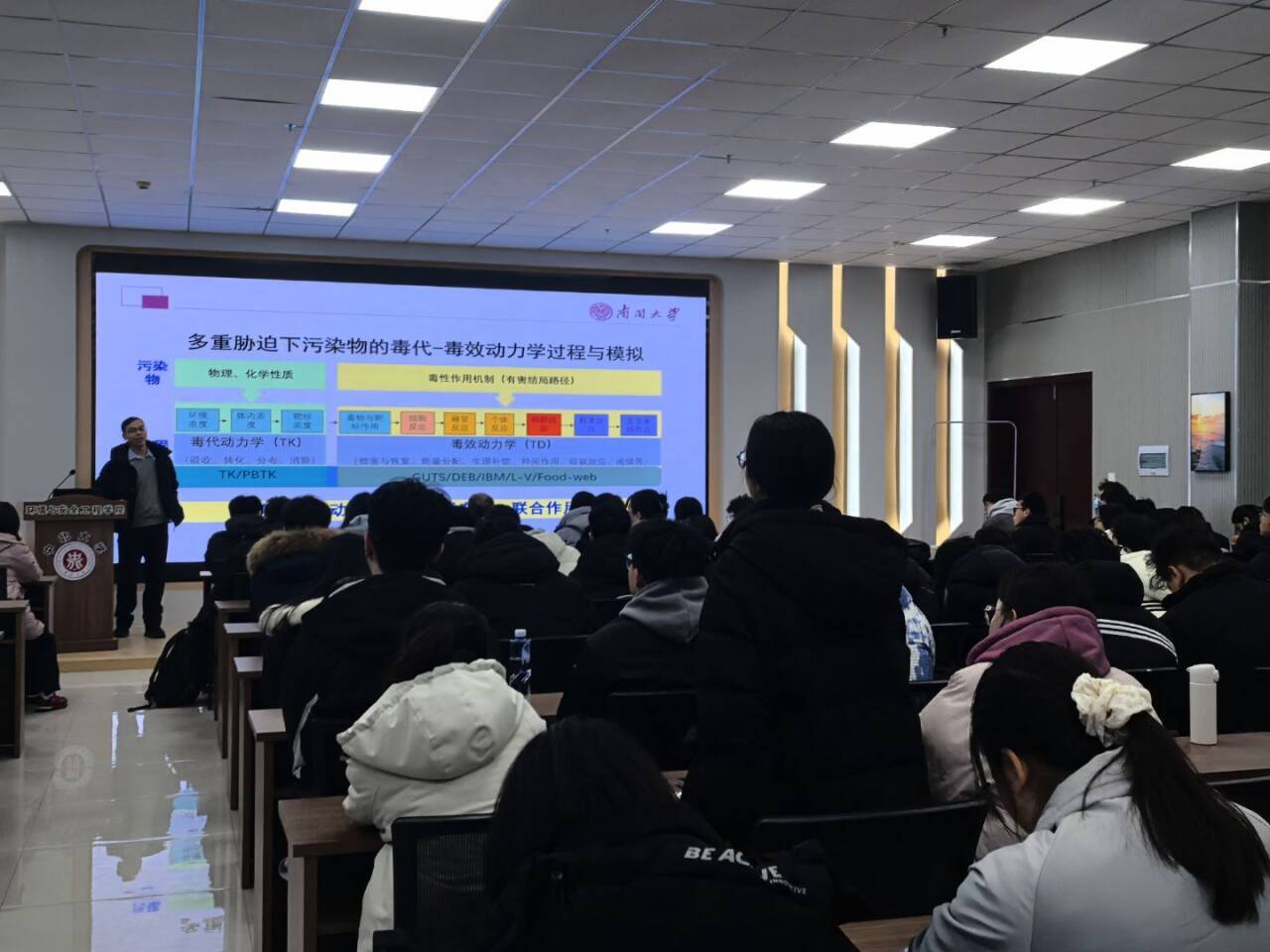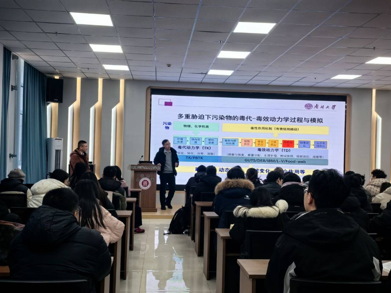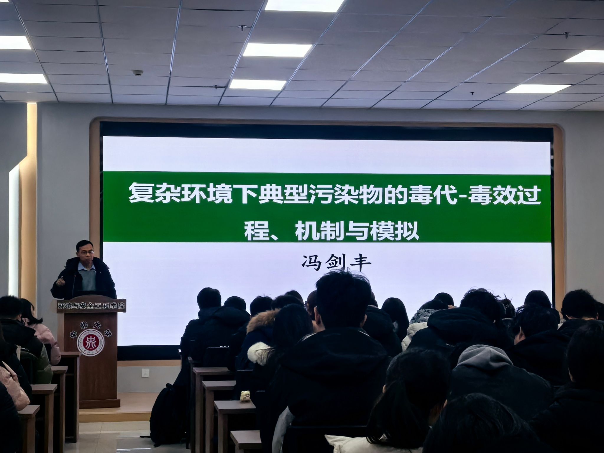 2025年12月16日上午9时30分,南开大学环境科学与工程学院冯剑丰教授应我校环境与安全工程学院邀请在环安楼A115学术报告厅,讲述了以“复杂环境下典型污染物的毒代-毒效过程、机制与模拟”为题的学术报告。