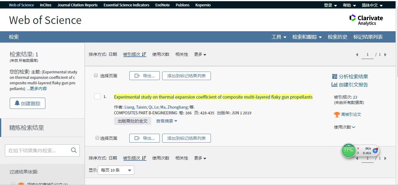 根据基本科学指标数据库(Essential Science Indicators,简称ESI)2019年11月的数据显示,我院青年教师梁泰鑫发表在《Composites Part B: Engineering》期刊、题名为“Experimental study on thermal expansion coefficient of composite multi-layered flaky gun propellants”的论文入选ESI高被引论文,收录时间为2019年9月11日。这是我院首次以第一作者、第一单位发表的学术论文进入ESI高被引论文的行列。