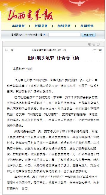 田间地头筑梦让青春飞扬--山西青年报2021年08月10日11版:校园--山西青年报 (sxqnb.com.cn)
